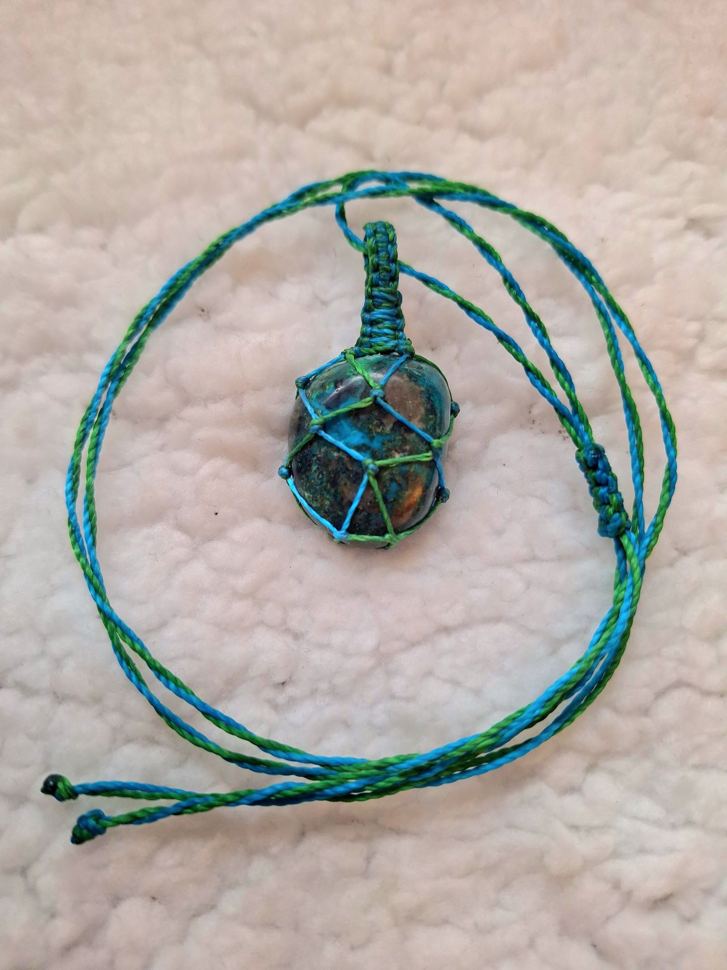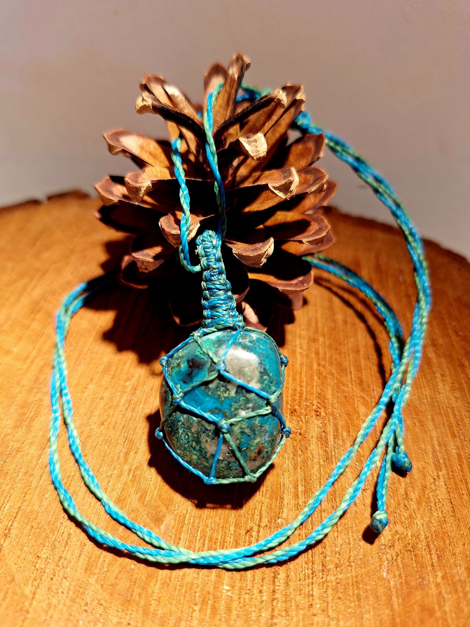 Crisocola – Colgante ajustable macramé – Hecho a mano