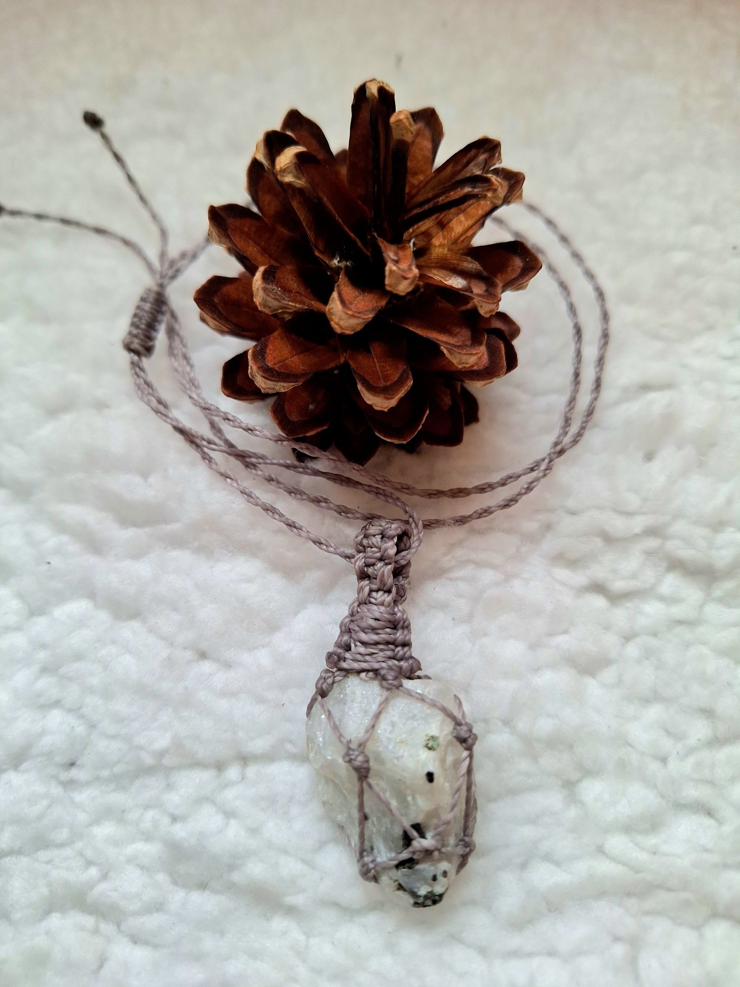 Piedra luna – Colgante ajustable macramé – Hecho a mano