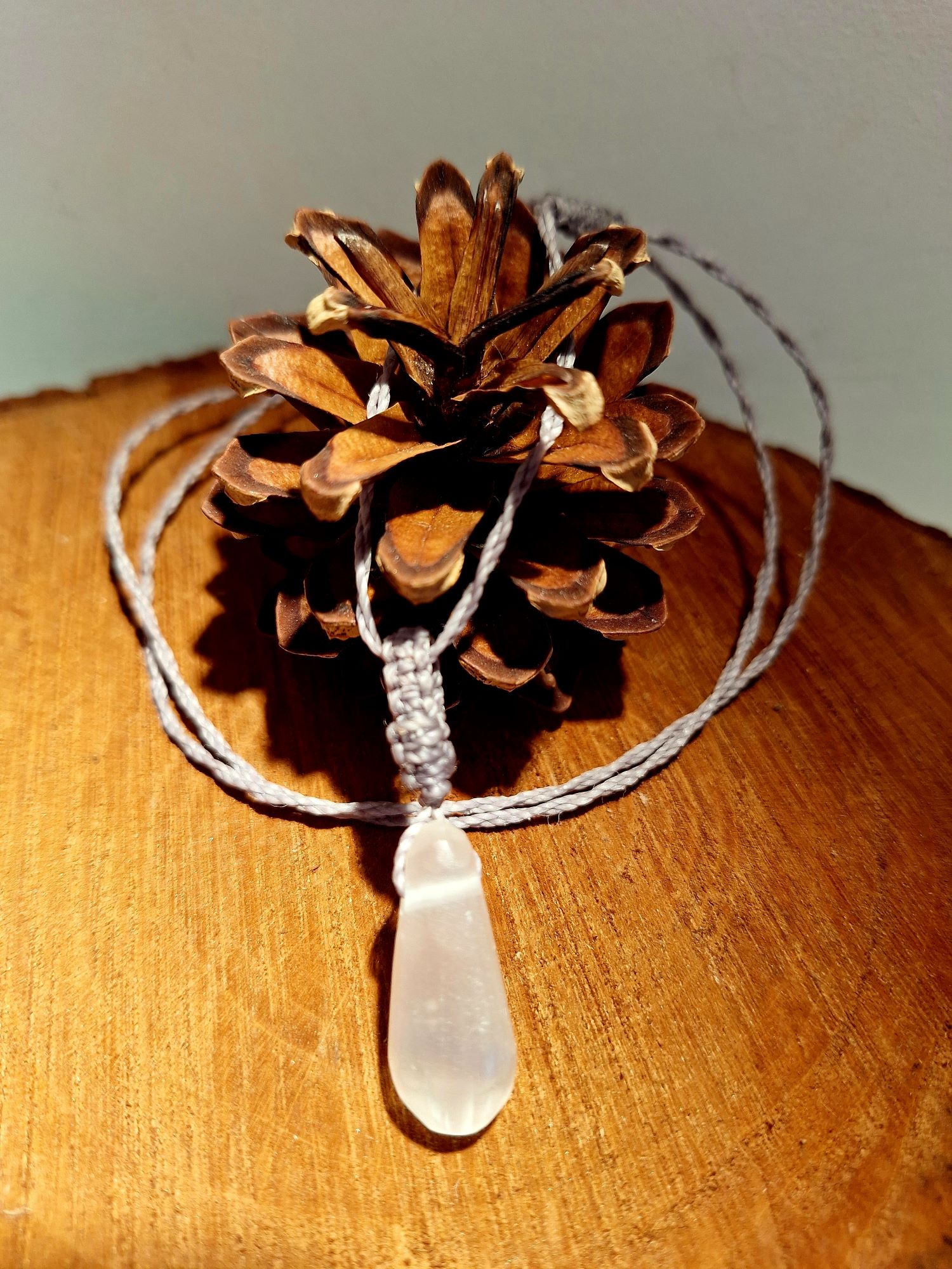 Selenita – Colgante ajustable macramé – Hecho a mano