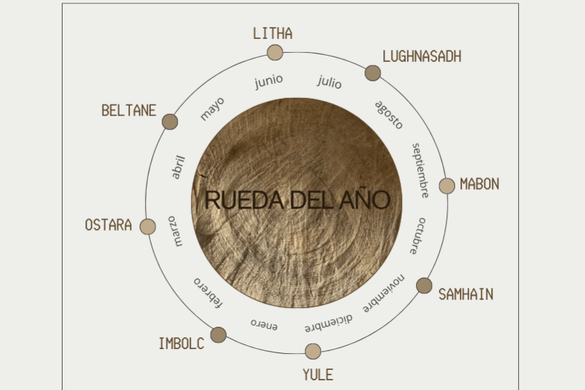 El calendario celta principal se basa en ocho celebraciones anuales, conocidas en la actualidad como la “Rueda del Año”, aunque solo cuatro son tradicionalmente celtas. Las otras cuatro (solsticios y equinoccios) fueron añadidas posteriormente por influencias neopaganas modernas (como la wicca).